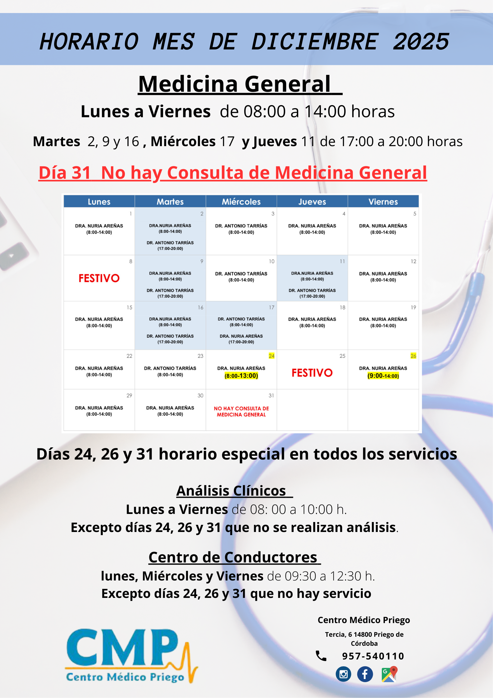 Centro Médico Priego, S.L. utilizamos cookies propias y de terceros que permiten al usuario la navegación a través de una página web (técnicas), para el seguimiento y análisis estadístico del comportamiento de los usuarios (analíticas), que permiten la gestión de los espacios publicitarios que, en su caso, el editor haya incluido en una página web (publicitarias) y cookies que almacenan información del comportamiento de los usuarios obtenida a través de la observación continuada de sus hábitos de navegación, lo que permite desarrollar un perfil específico para mostrar publicidad en función del mismo elaboración de perfiles (análisis de perfiles) (si hubiera otras finalidades debería incluirse la información). Si acepta este aviso consideraremos que acepta su uso. Puede obtener más información, o bien conocer cómo cambiar la configuración, en nuestra Política de cookies.